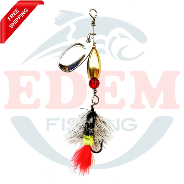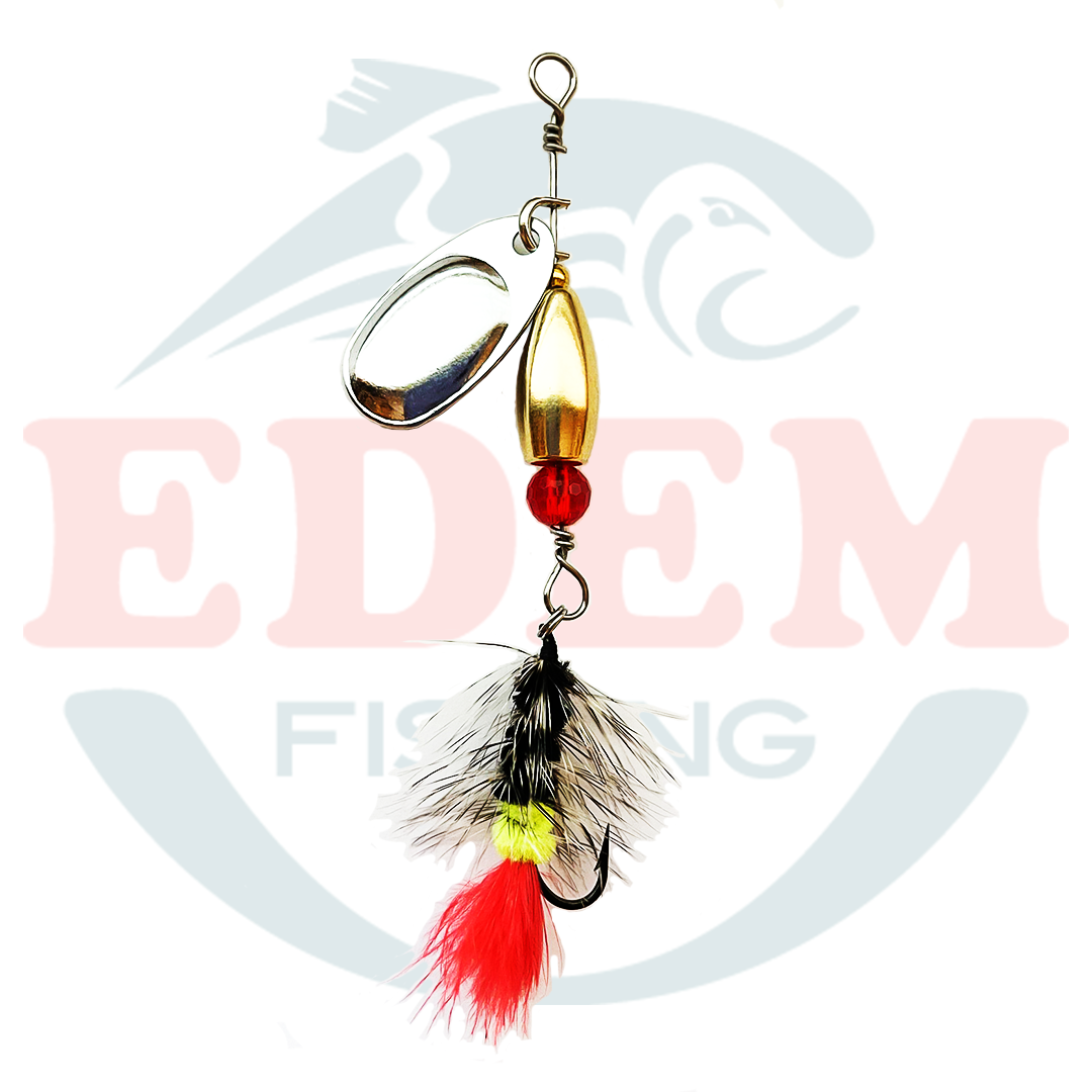 - Durable Design: With a sturdy construction and securely tied feathers, this spinner is built to withstand the most vigorous of fights.